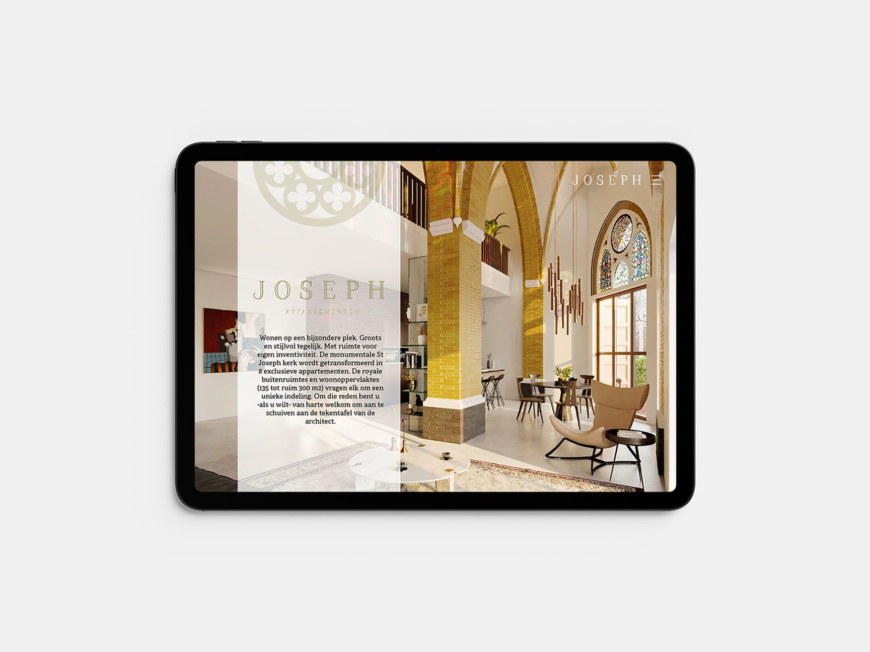 De identiteit van Joseph komt pas echt tot leven in de uitwerking van beeld en middelen. In de Artist Impressions zijn de karakteristieke elementen van de kerk bewust behouden en uitgelicht. Glas-in-loodramen, spitsbogen en andere neogotische kenmerken vormen geen decor, maar het vertrekpunt van de woonbeleving.