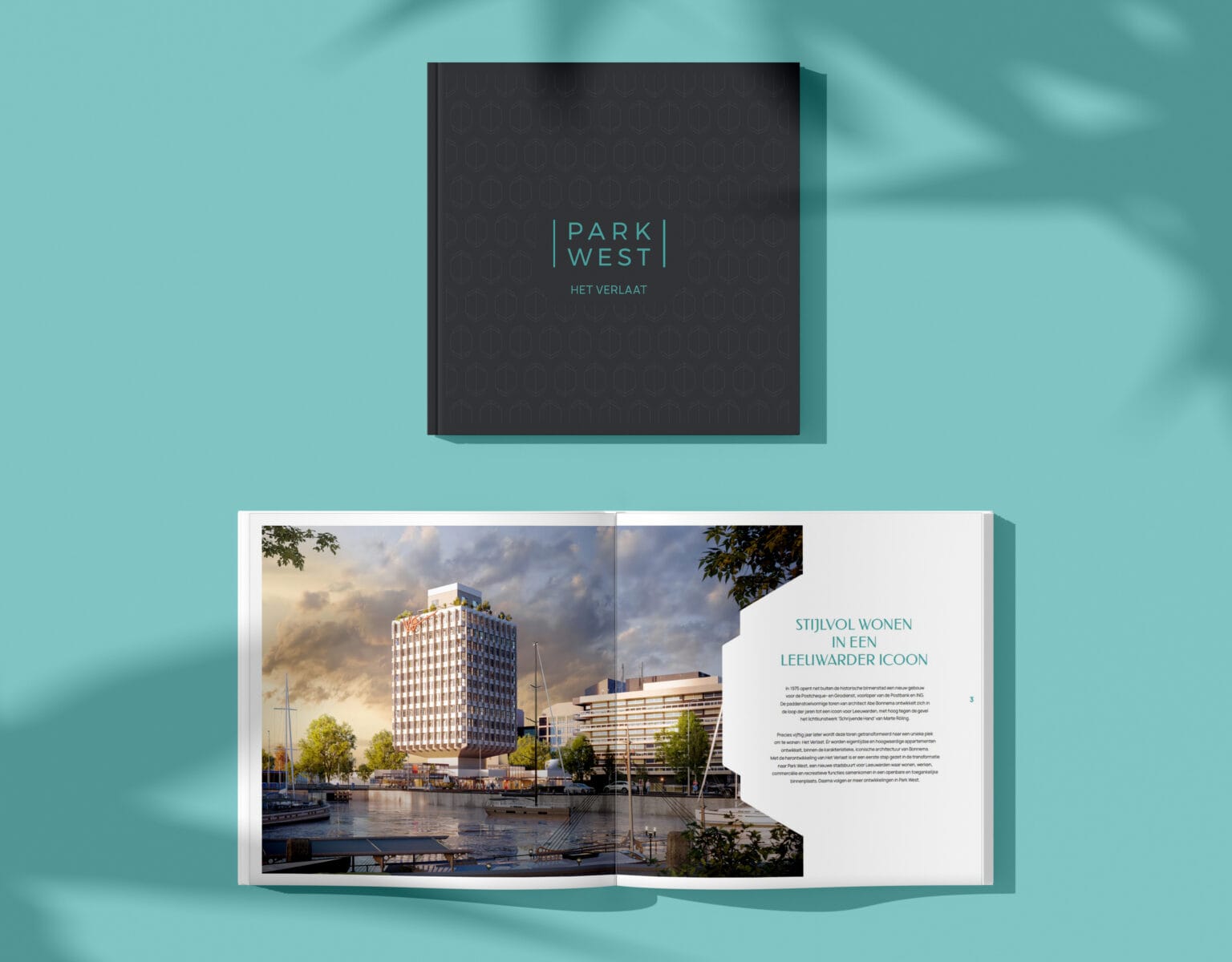 Binnen deze introductie ontwikkelen we onder andere de verkoopdocumentatie voor het project. De verkoopbrochure vertelt het verhaal van Het Verlaat en de plek binnen Park West, terwijl voor het penthouse een aparte brochure wordt ontwikkeld waarin het exclusieve karakter van dit appartement centraal staat.