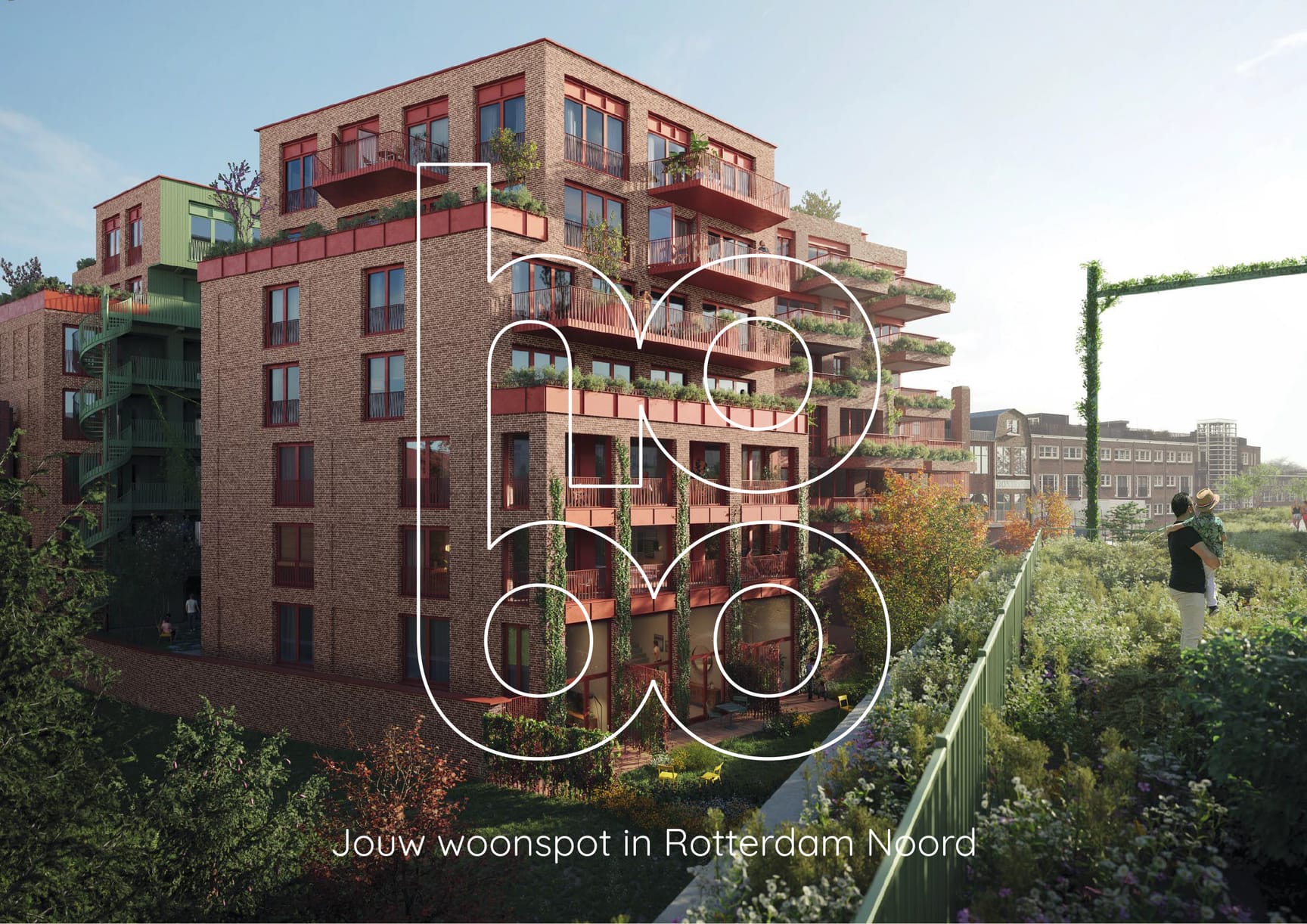 De pay-off ‘Jouw woonspot’ maakt het persoonlijk en direct. Geen formeel nieuwbouwproject, maar een plek waar je je eigen leven vormgeeft. Geïnspireerd door de energie van Rotterdam-Noord ontwikkelden we een concept voor stadsbewoners die bewust kiezen voor de dynamiek van de stad, maar ook waarde hechten aan groen en ontmoeting.