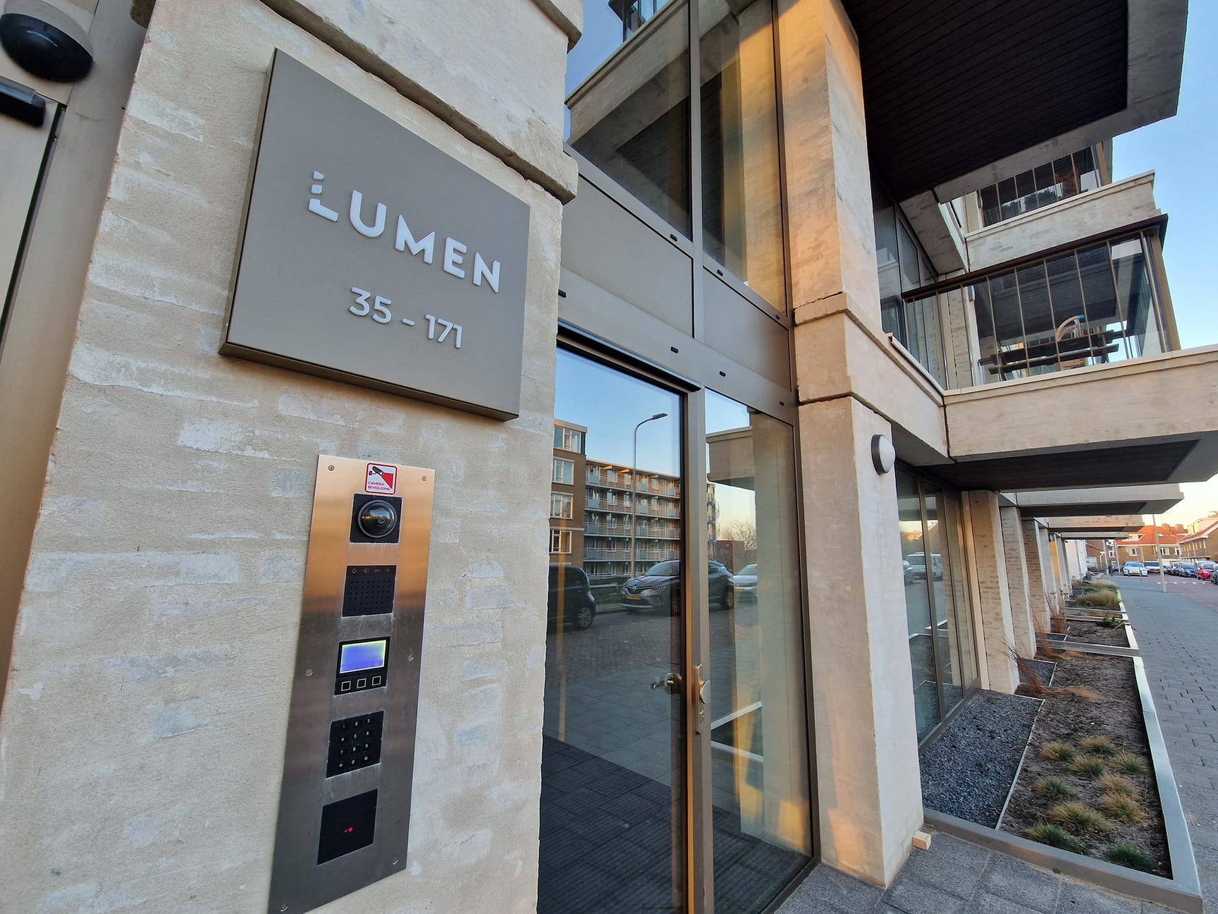 Ook na de verkoop bleef onze betrokkenheid zichtbaar. We ontwikkelden onder andere een geschenk voor kopers, verzorgden de signing bij de entree en ontwierpen de huisnummers, allemaal in lijn met de oorspronkelijke huisstijl. Het gebouw draagt vandaag de dag nog steeds de naam Lumen, zichtbaar in grote letters boven de entree.