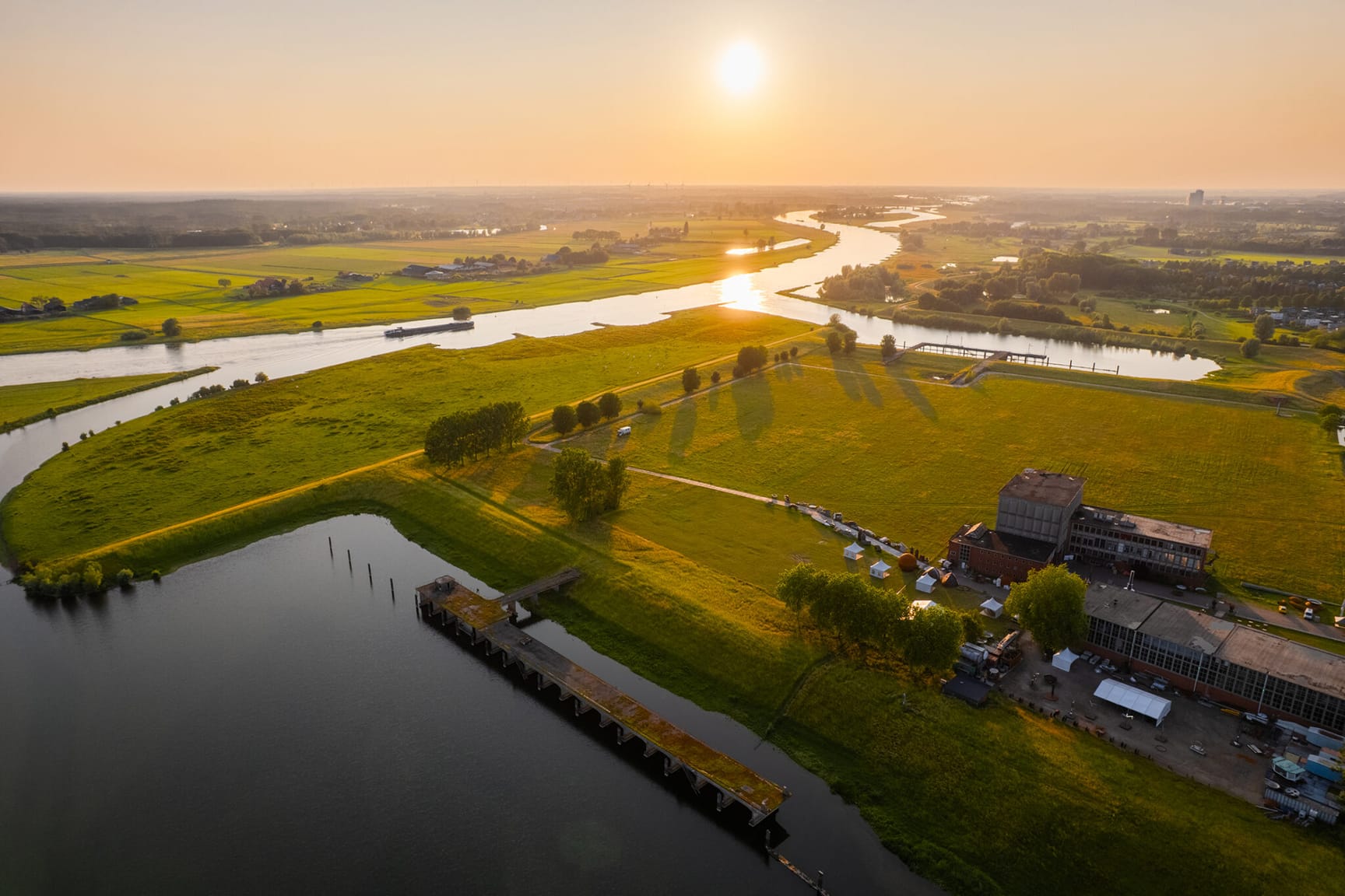 Ook in de fotografie komt dit gevoel terug. Voor de beeldcampagne kozen we bewust voor fotografie tijdens het golden hour, wanneer het warme licht van de ondergaande zon het landschap en de rivier op hun mooist laat zien.