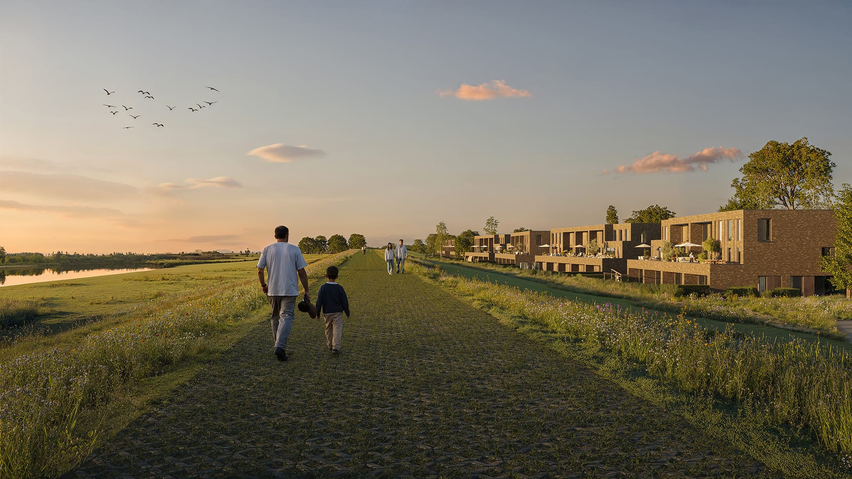 Het leven aan de IJssel vormt het hart van Nieuw Harculo. De rivier bepaalt het tempo, de seizoenen kleuren het dagelijks leven. Vanuit die gedachte ontwikkelden we het concept ‘Thuis aan de IJssel’.