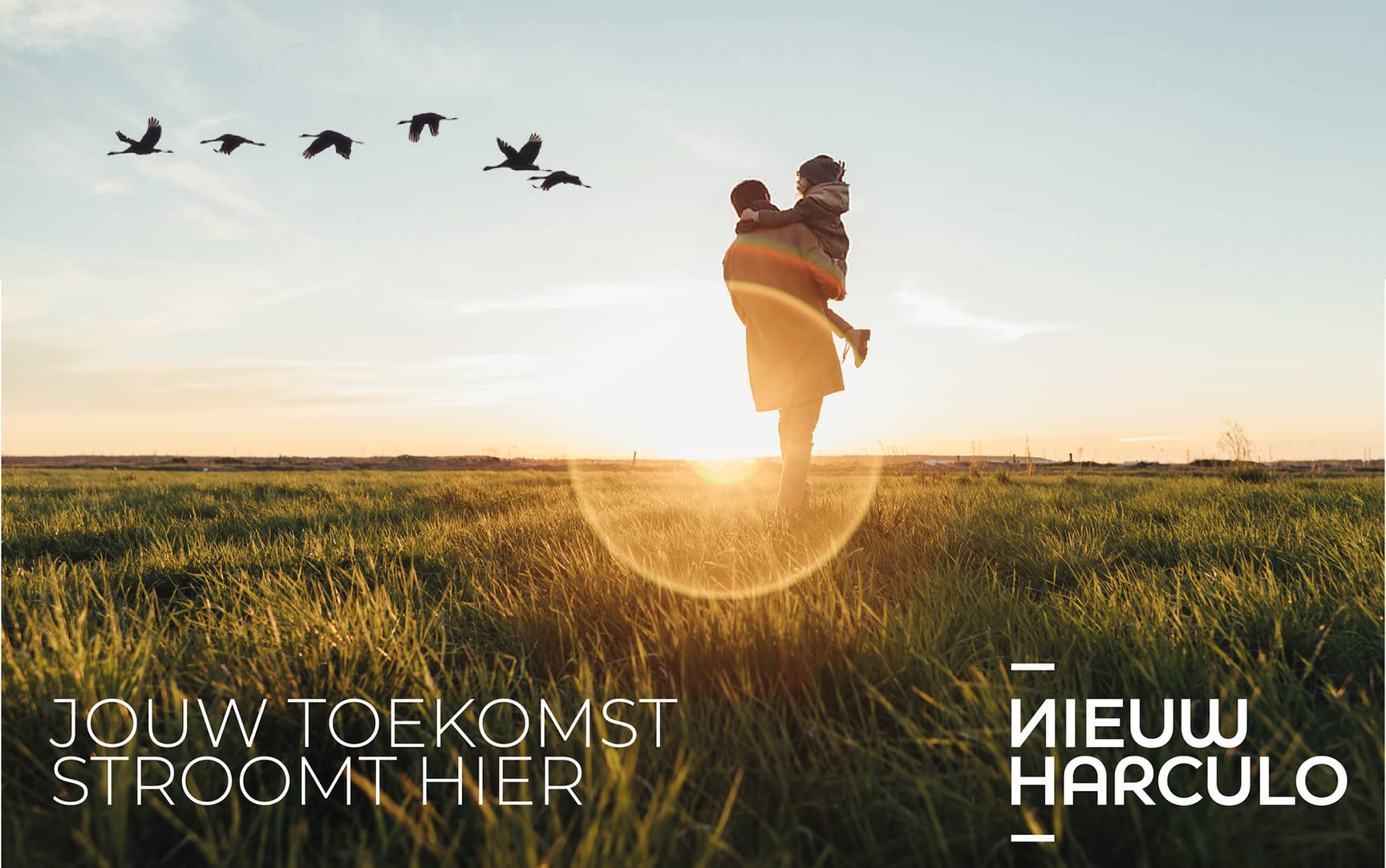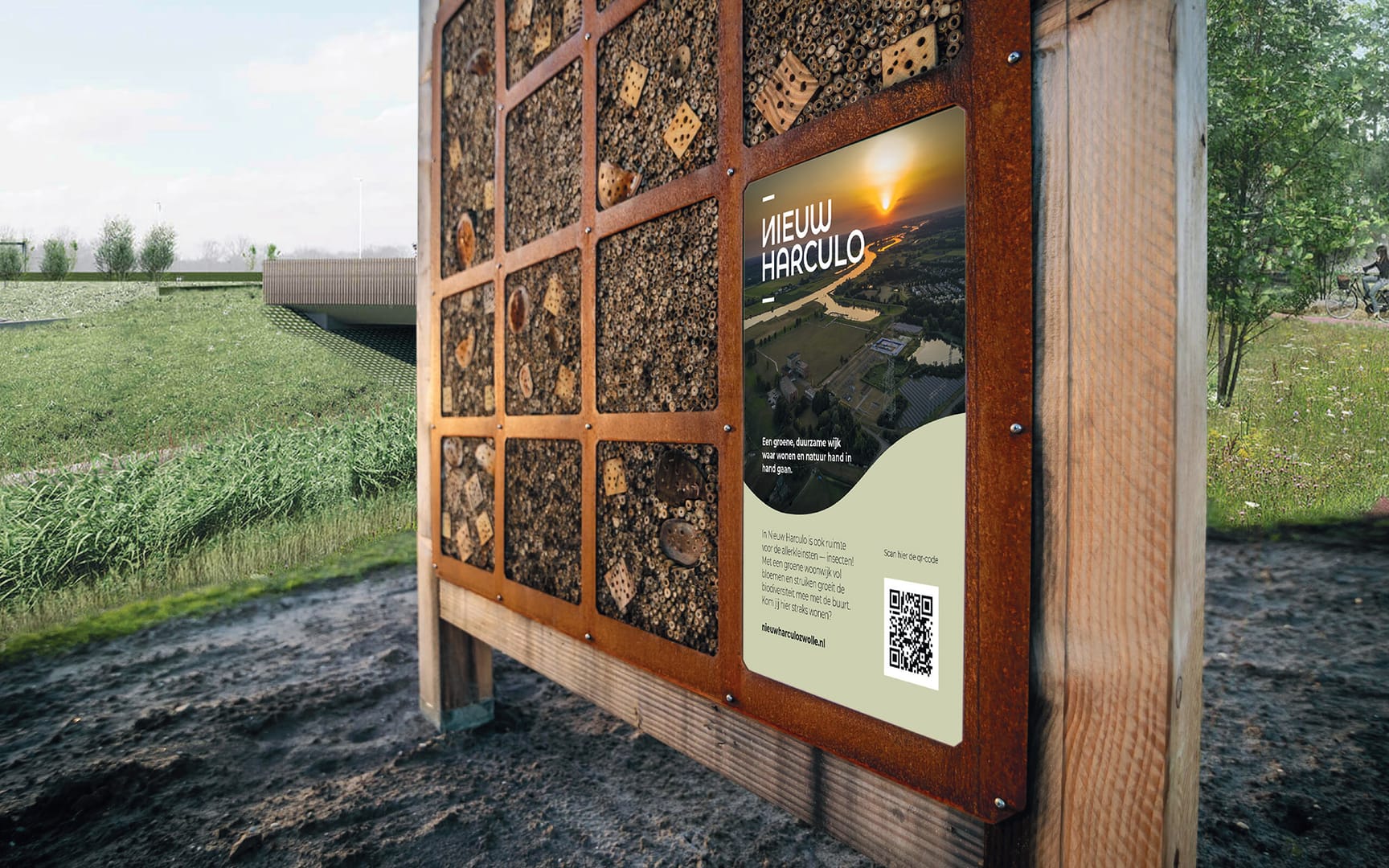 De identiteit van Nieuw Harculo is geïnspireerd op het landschap zelf: weids, rustig en eerlijk. De branding is natuurlijk van kleur en toon, met beelden die het leven aan de rivier laten voelen.