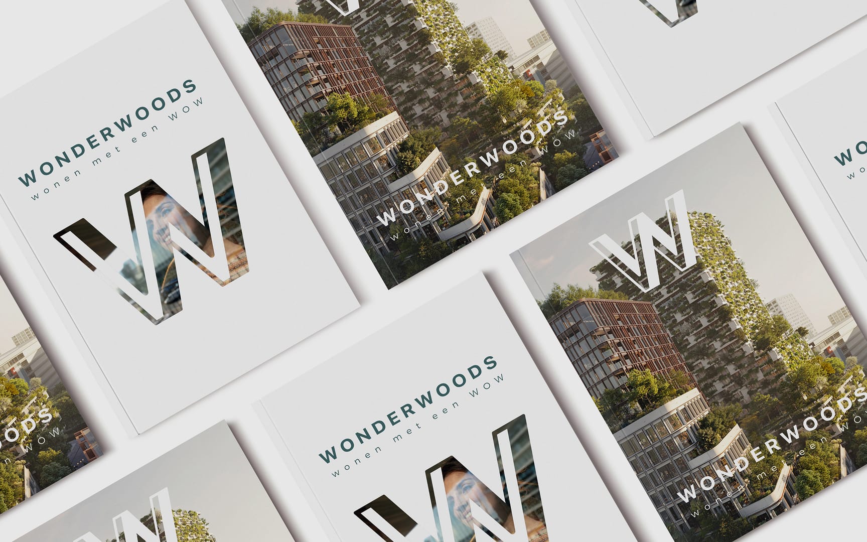 De bestaande huisstijl van Wonderwoods vormde het vertrekpunt. Het herkenbare ‘W’-element is doorontwikkeld als dynamisch kader voor verschillende verhalen: van natuur en architectuur tot mensen en stedelijk leven.