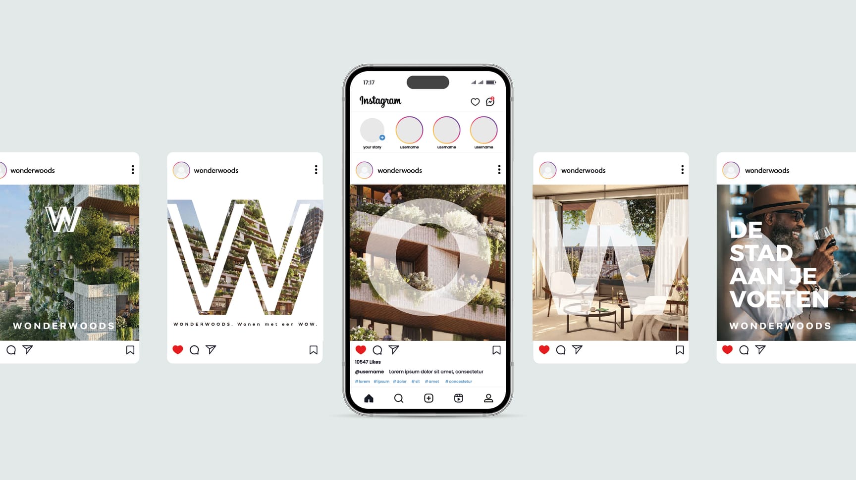 We brachten meer menselijkheid in beeld en taal. Door middel van modellen en sfeerbeelden in de stad, in combinatie met het iconische project, brachten we ‘wonen in Wonderwoods’ tot leven. De toon werd persoonlijker en toegankelijker, terwijl de kwaliteit en het merkgevoel behouden bleven.